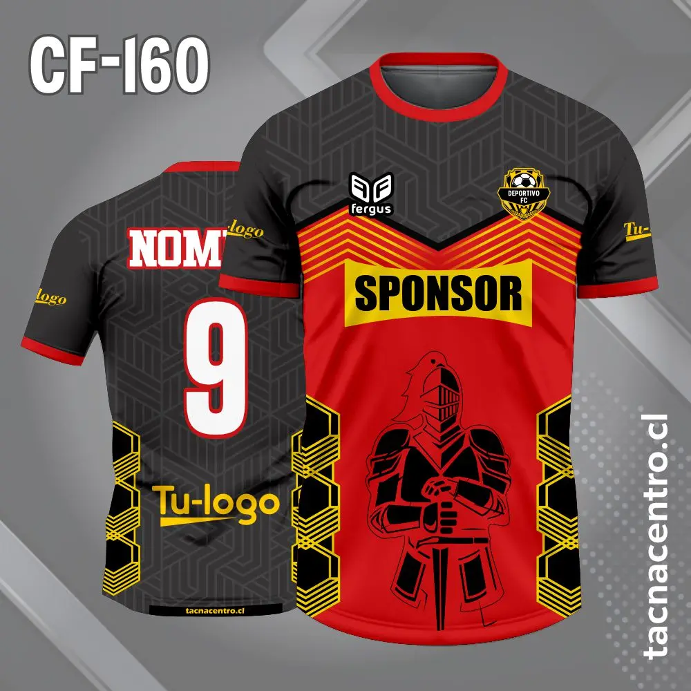 Camiseta de Futbol Caballero Medieval personalizado con nombres, números y logotipos, con una cantidad ilimitada de patrocinadores. El modelo esta sujeto a modificaciones. También ofrecemos aplicaciones adicionales en bordado o DTF.
