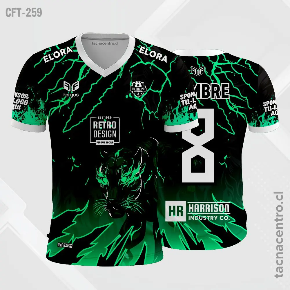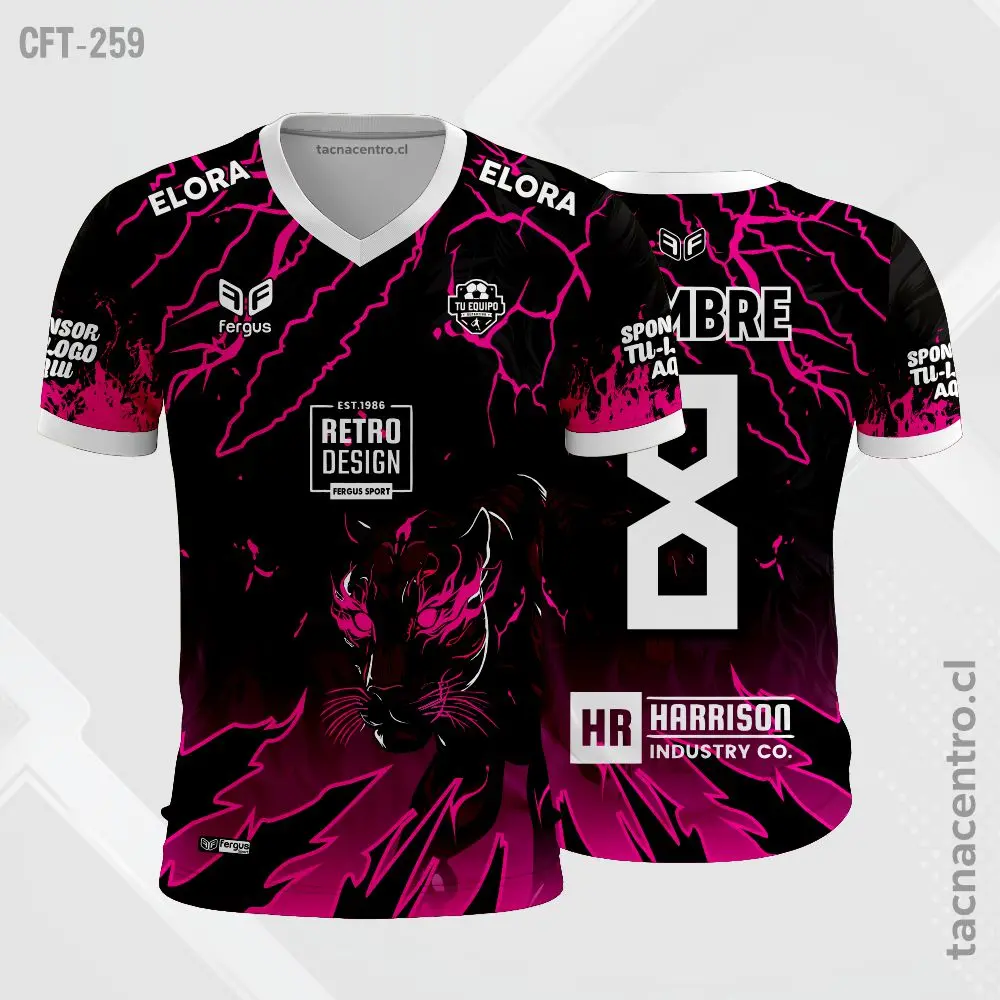 Camiseta de Futbol de Pantera Negro Rosa personalizado con nombres, números y logotipos, con una cantidad ilimitada de patrocinadores. El modelo esta sujeto a modificaciones. También ofrecemos aplicaciones adicionales en bordado o DTF.