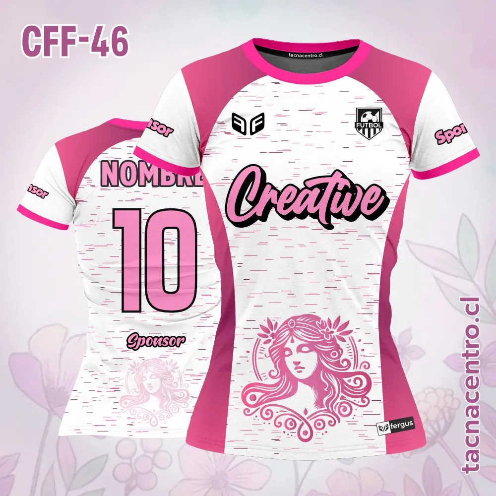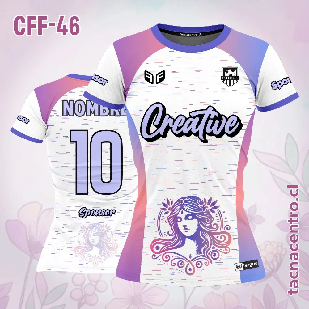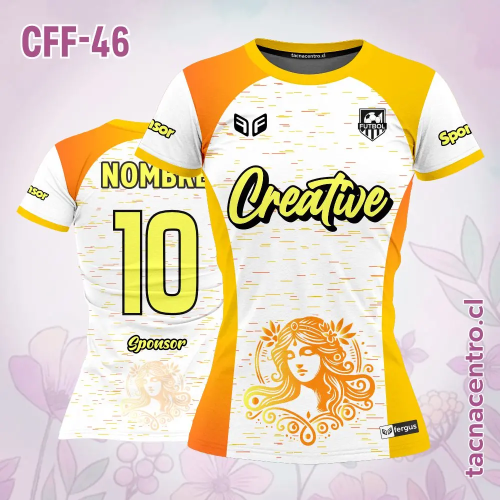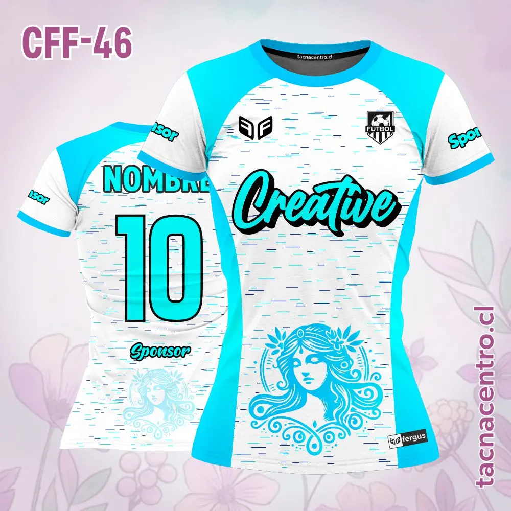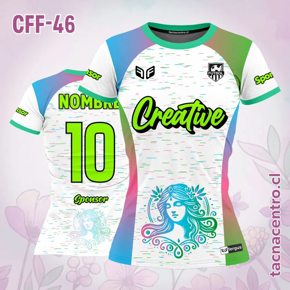 Camiseta de Futbol Femenino Chicas Diosa Personalizado con nombres, números y logotipos, con una cantidad ilimitada de patrocinadores. El modelo esta sujeto a modificaciones. También ofrecemos aplicaciones adicionales en bordado o DTF.