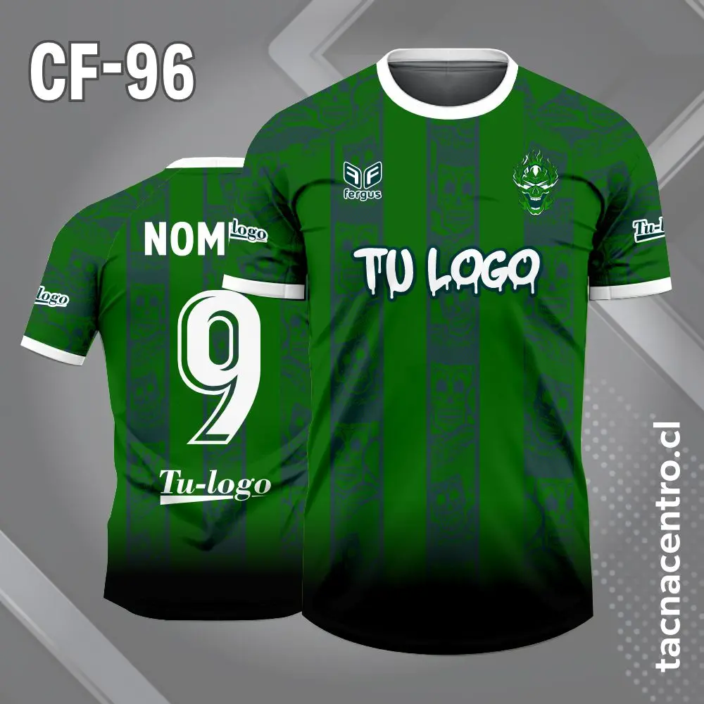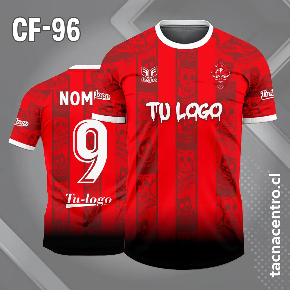 Camiseta de Futbol franjas de Calavera personalizados con nombres, números y logotipos, con una cantidad ilimitada de patrocinadores. El modelo esta sujeto a modificaciones. También ofrecemos aplicaciones adicionales en bordado o DTF.