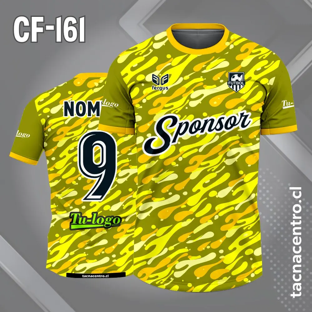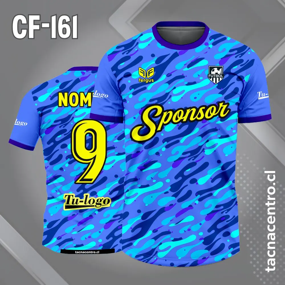 Camiseta de Futbol Manchas Celestes personalizado con nombres, números y logotipos, con una cantidad ilimitada de patrocinadores. El modelo esta sujeto a modificaciones. También ofrecemos aplicaciones adicionales en bordado o DTF.