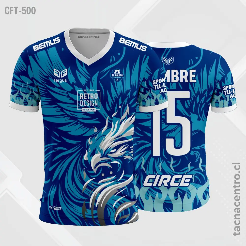 La Camiseta de Futbol tela Dri-Fit Fénix Azul representa renovación, fuerza y espíritu competitivo en cada partido. Inspirada en la figura del fénix, simboliza determinación y capacidad de superación, mientras que el azul transmite confianza y estabilidad en el juego. Elaborada en tela tipo Dri-Fit, ofrece óptima transpirabilidad y secado rápido, ayudando a mantener el rendimiento y la comodidad durante todo el encuentro. Además, es completamente personalizable con nombres, números, escudos y patrocinadores, adaptándose a la identidad de cada equipo.