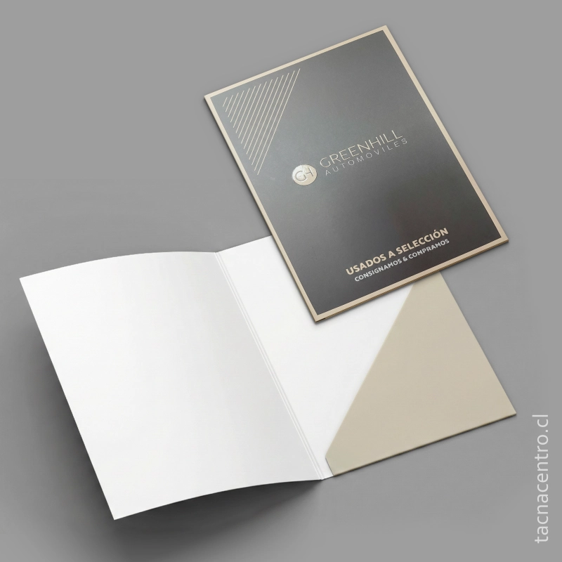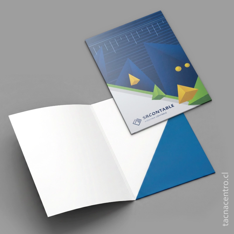 Carpetas fabricadas en papel couché de 300 gramos, que garantiza rigidez, durabilidad y una excelente presentación corporativa.