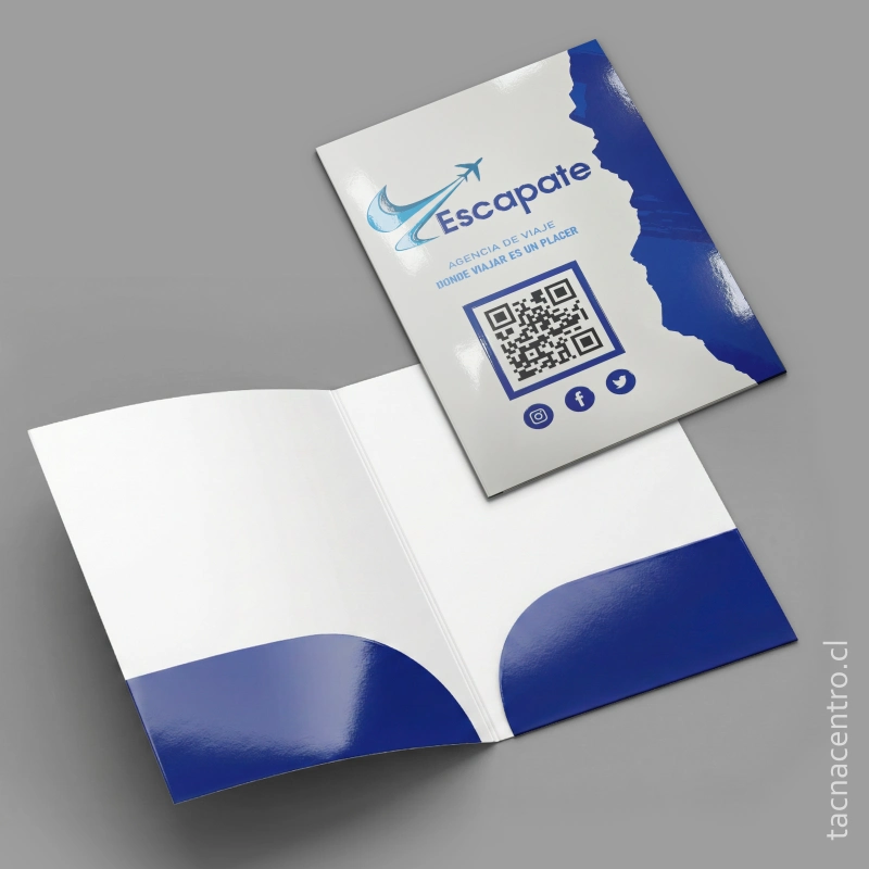 Carpetas fabricadas en papel couché de 300 gramos, garantizando firmeza y durabilidad.