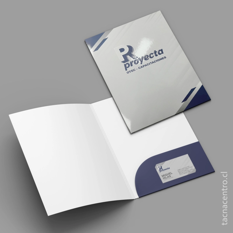 Carpetas elaboradas en papel couché de 300 gramos, que aseguran firmeza, durabilidad y excelente presentación.