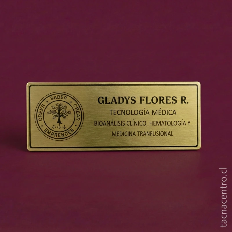 Al imprimirse sobre la superficie dorada, los colores se integran de manera elegante y uniforme, por lo que se recomienda utilizar un solo color de tinta, especialmente en pines de identificación que requieren claridad y legibilidad.